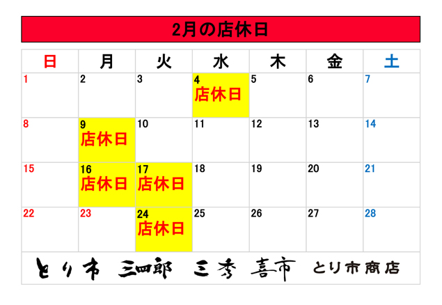 1月・2月の店休日